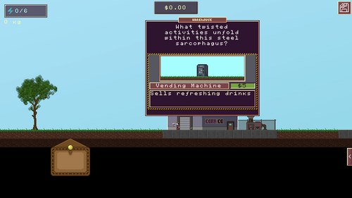 2- The construction system. The warehouse is now used as a hub to construct new buildings. For now, this just means that getting the vending machine and upgrade store is locked behind a bit of progression, but I plan on adding many new buildings. So far, I can confirm to be working on a consumable shop, which will sell all sorts of consumable items for much cheaper than permenant upgrades, but I also have ideas for other buildings like a mining elevator, and automatic mining drill that mines rocks below, a crate for storing rocks, and possibly stat specific upgrade stores, like a tailor for pocket sizes and a workshop for more advanced upgrades.